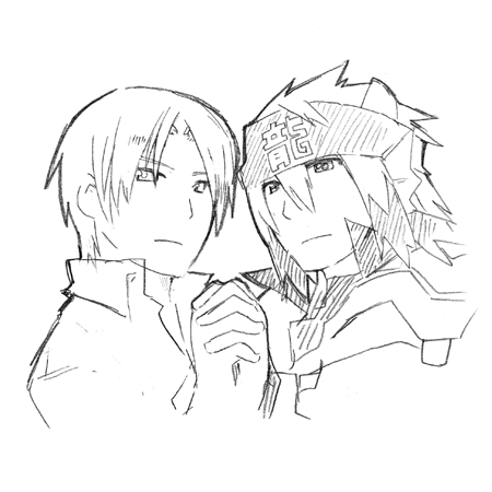 資料として描いてたサナっちと私が見本に描いてと頼んだ緋焔!